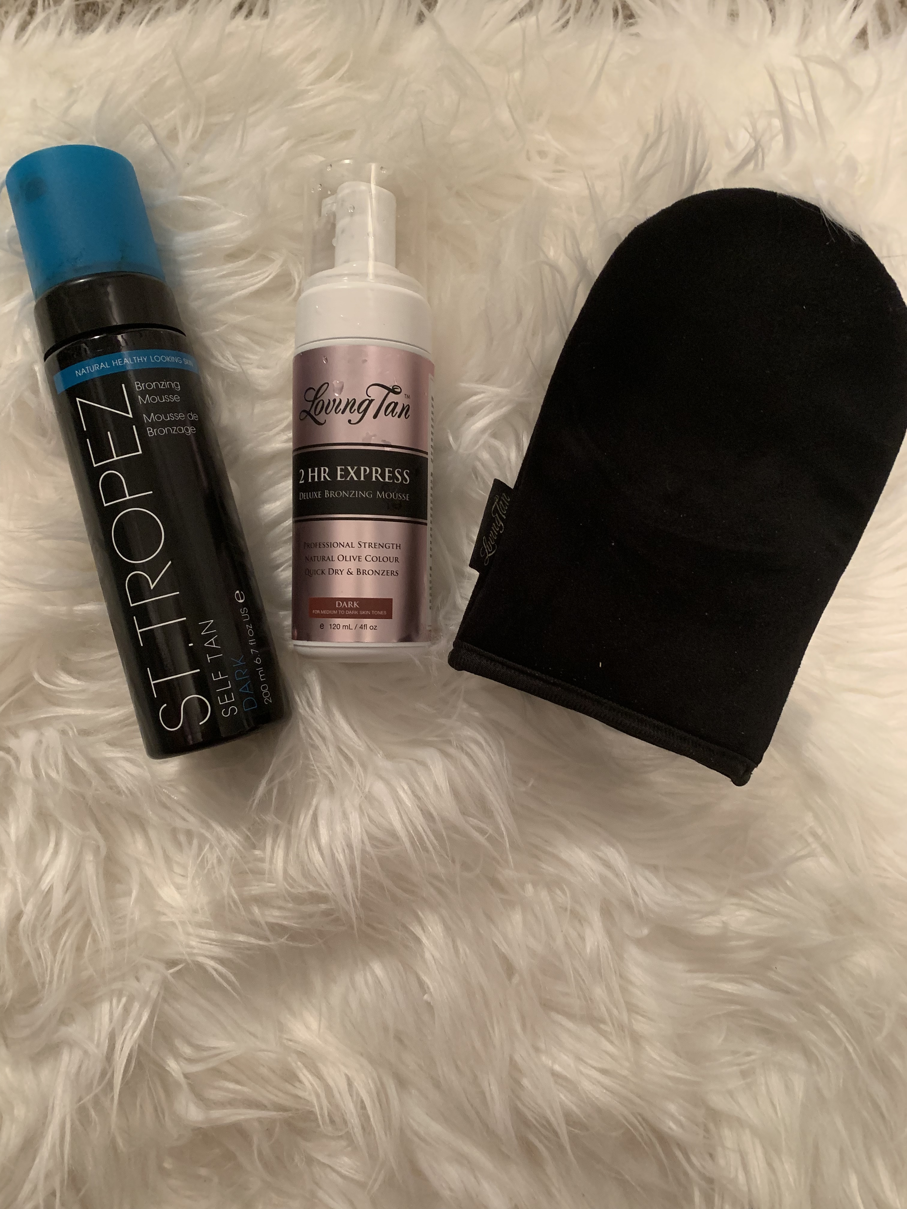 In high school and college I spent way too much time in a tanning bed, and now that I’m older I regret it! I’ve smartened up and have since learned to self tan at home and on occasion or for a special event I will go get a spray from Sun Tan City! I have probably tried ten to fifteen brands over the last few years and I keep coming back to these two brands! They’re both in the $40 range, and last me about 3 months! I spray about twice a week, and each one comes with a mit. They both instantly show color so you know if you’ve missed any spots, and the mit helps to ensure you aren’t splotchy! You can get the St Tropez from amazon, and the loving tan from Ulta! I just apply the self tanner at night after I’ve shaved and exfoliated and then rinse it off in the morning! If you guys have any other self tanners you’re loving make sure you share below!